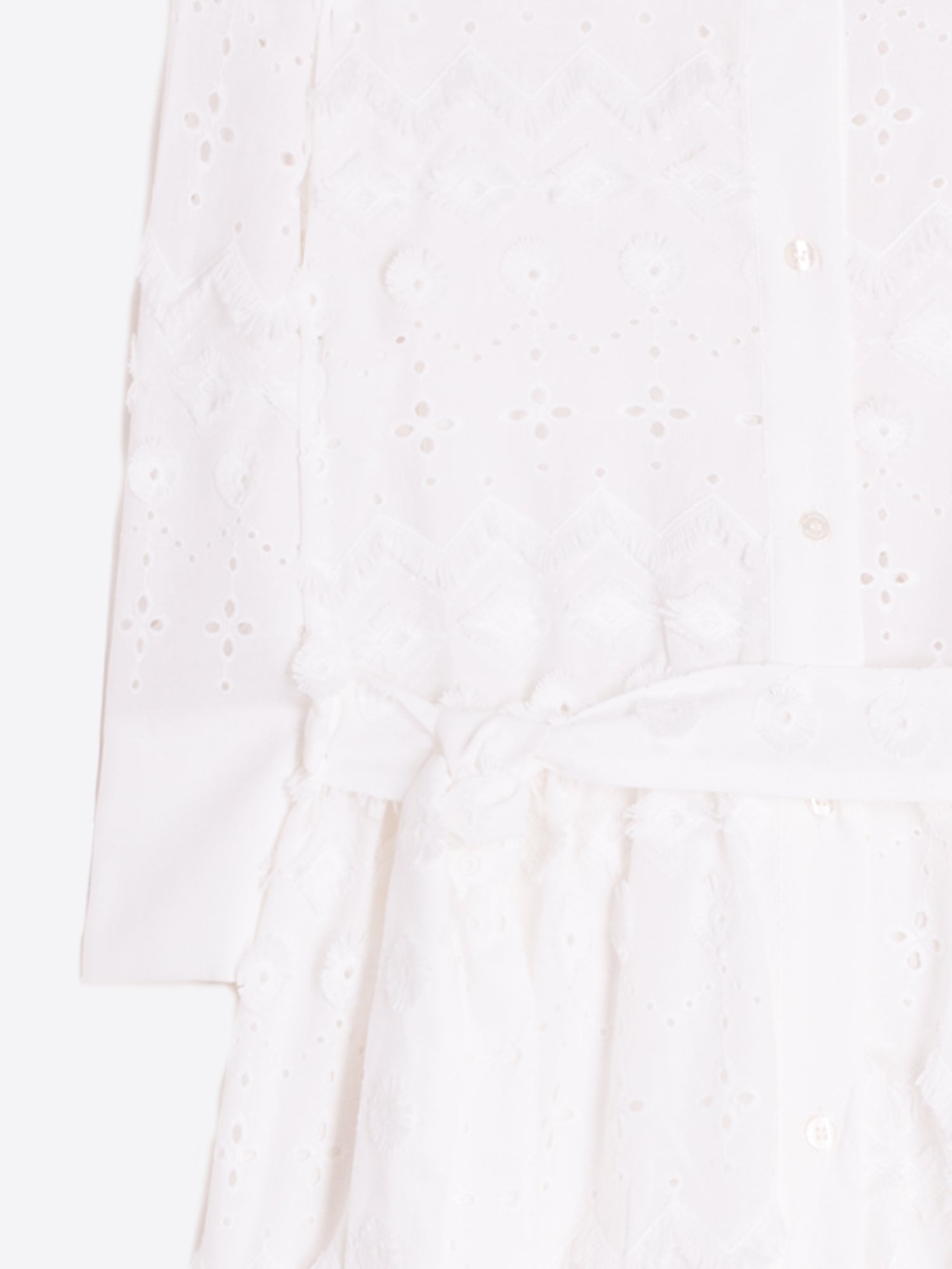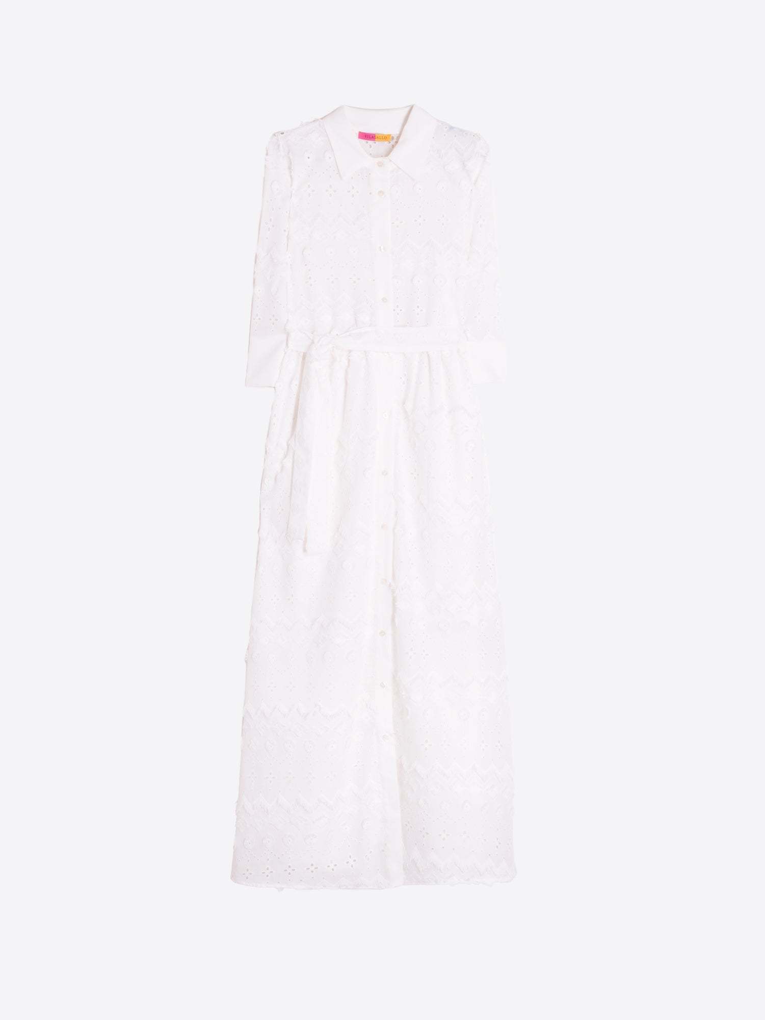 Introducing the Natalia – your new summer essential that effortlessly blends elegance with ease. Crafted from delicate broderie anglaise cotton, this maxi dress features a crisp shirt collar, neat cuffs, and practical button-front fastening. The three-quarter sleeves offer the perfect balance of coverage and breathability, while the included tie belt lets you cinch your waist for a flattering silhouette. Slip it on, add your favourite jewellery and sunglasses, and you're ready for anything. Pure, timeless style.