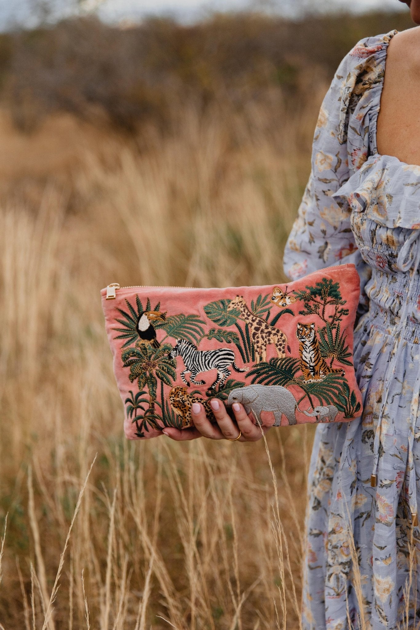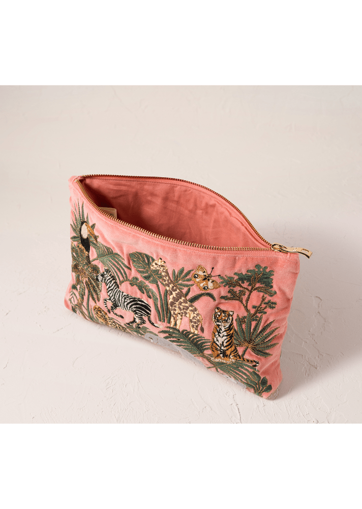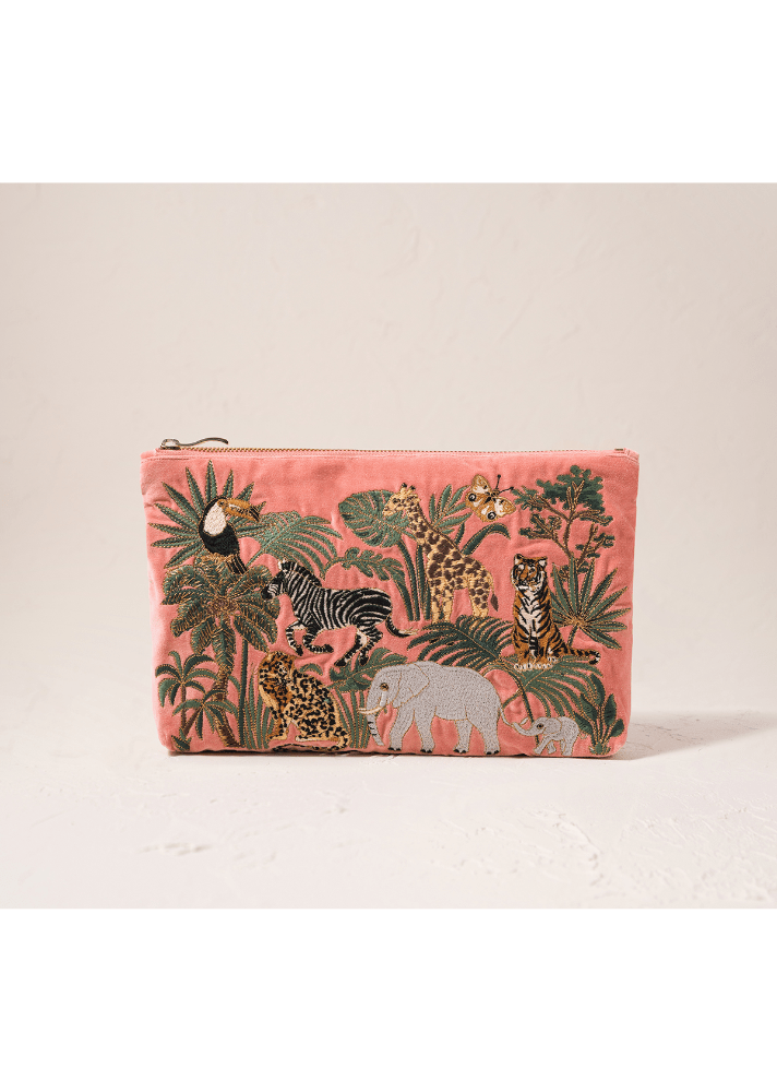 Celebrate the beauty of wildlife with this stunning Everyday Pouch, adorned with intricate animal embroidery set against a warm coral pink base. Inspired by the creatures that enrich our world, each motif is carefully stitched onto soft, durable fabric that's built to last. Perfectly proportioned for your daily essentials, this versatile pouch slides effortlessly into your handbag or stands alone as an elegant clutch. It's the little luxury that brings organisation and joy to your everyday routine.