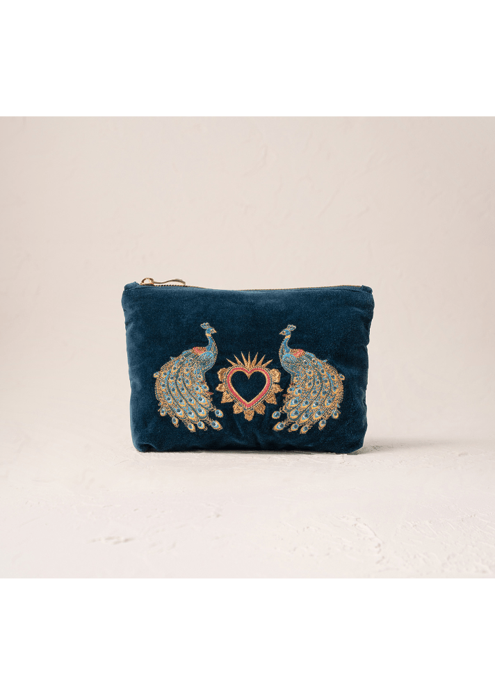Complete with vivid peacocks embroidered in a secret garden, this Elizabeth Scarlett mini pouch in ink blue velvet adds a botanical romance to your daily routine. This elegant pouch is perfect for organising cosmetics, tech essentials, or treasured jewellery, elevating everyday organisation into a luxurious ritual. Ideal for gifting or a self-indulgent treat, it brings style and sophistication wherever you go.