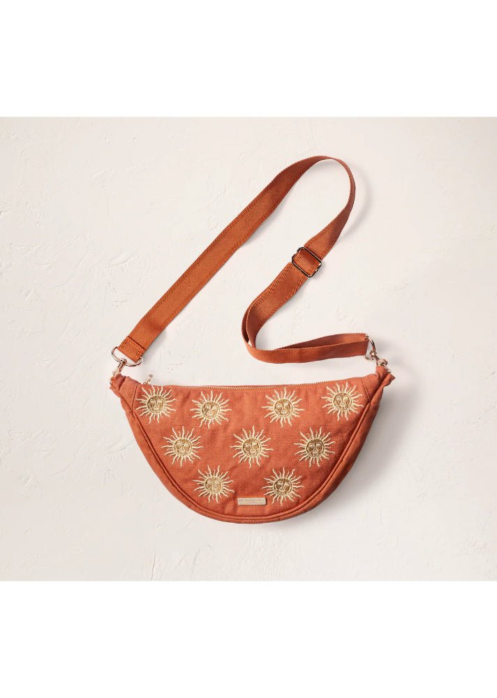 Meet your new everyday companion—a sling bag that seamlessly blends practicality with artistic flair. The adjustable strap sits comfortably across your body, leaving your hands completely free, whilst internal zip pockets and a dedicated key clip keep your essentials organised and secure. Whether you're heading out for brunch or running errands around town, this bag will become an indispensable part of your day. The real magic lies in Elizabeth's captivating design: a hand-drawn sun with a gentle, human-like face, brought to life through intricate gold and vanilla embroidery on durable canvas fabric. It's a bag that tells a story—one of warmth, creativity, and thoughtful design.