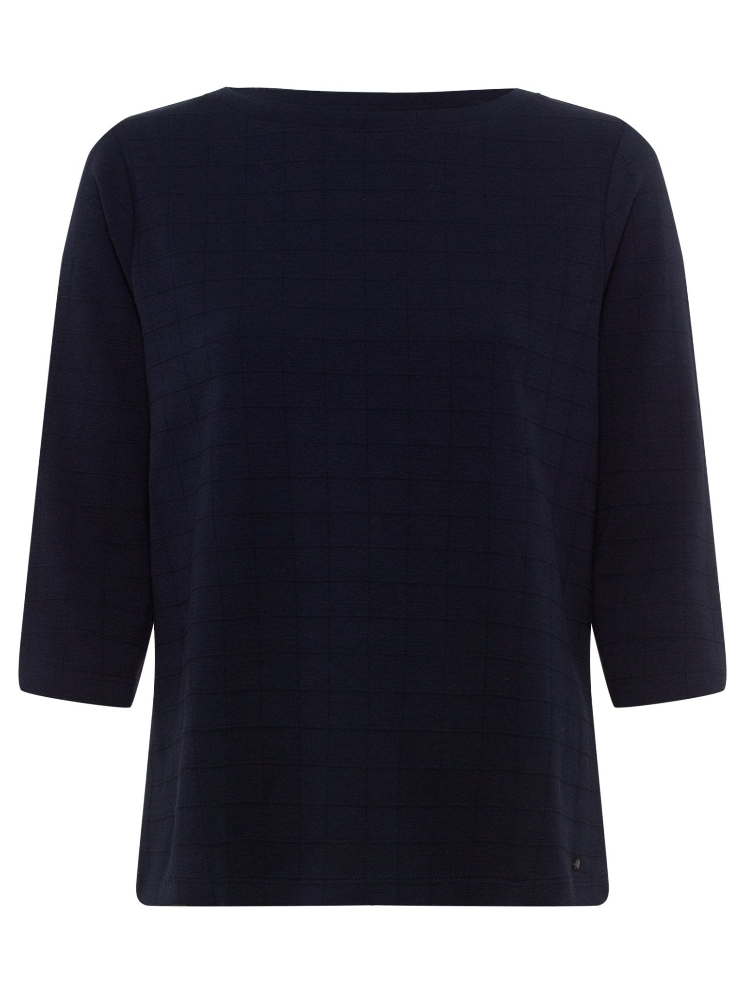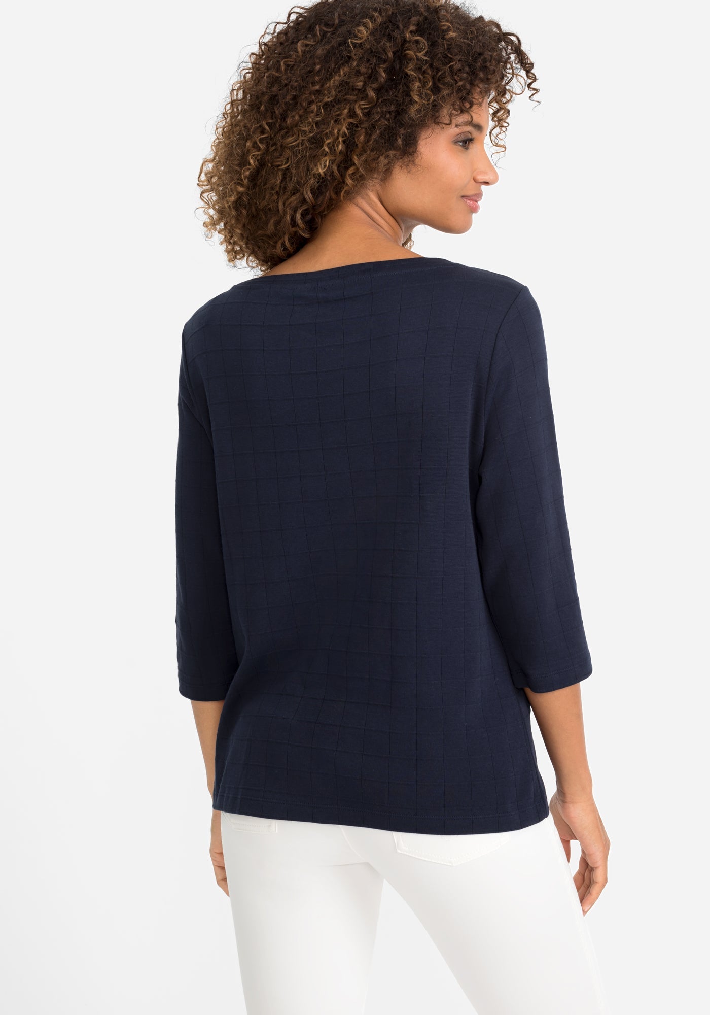 Discover effortless elegance with this Olsen crew neck top, featuring a refined jacquard check pattern that adds subtle sophistication to your wardrobe. The signature "Hannah" fit offers a relaxed, flattering silhouette that moves beautifully with you. Crafted from pure cotton, it delivers a soft, comfortable feel against your skin throughout the day. Versatile three-quarter sleeves make this piece a year-round essential—wear it solo for understated style or layer it under your favourite blazers and cardigans for added dimension. A timeless investment piece that adapts to your lifestyle.