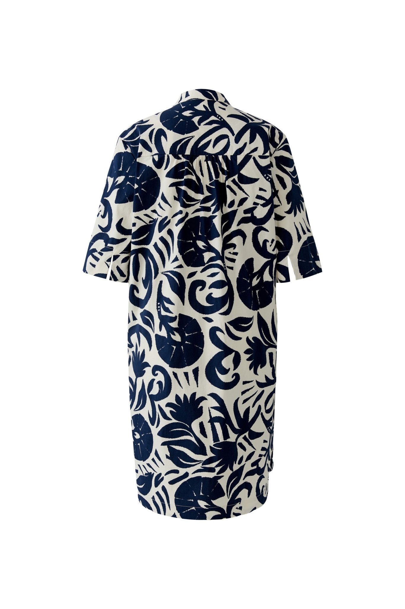 wardrobe staple that delivers on both style and practicality. The tunic-inspired cut skims the body without clinging, creating a flattering silhouette for all shapes and sizes. Whether you're heading to brunch with friends, running errands, or enjoying a leisurely afternoon, this dress adapts to your lifestyle. Easy to care for in a cotton stretch blend, it is built to last and comfortable. The bold blue and white contemporary print makes this Oui piece an investment piece that will become a go-to favourite season after season.
