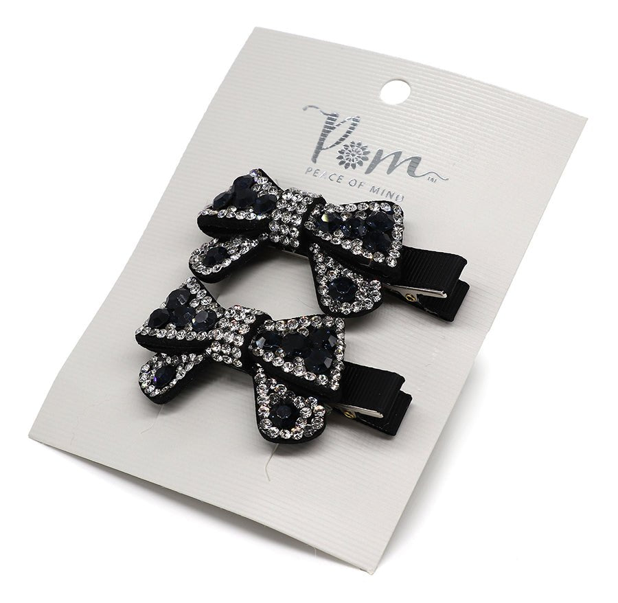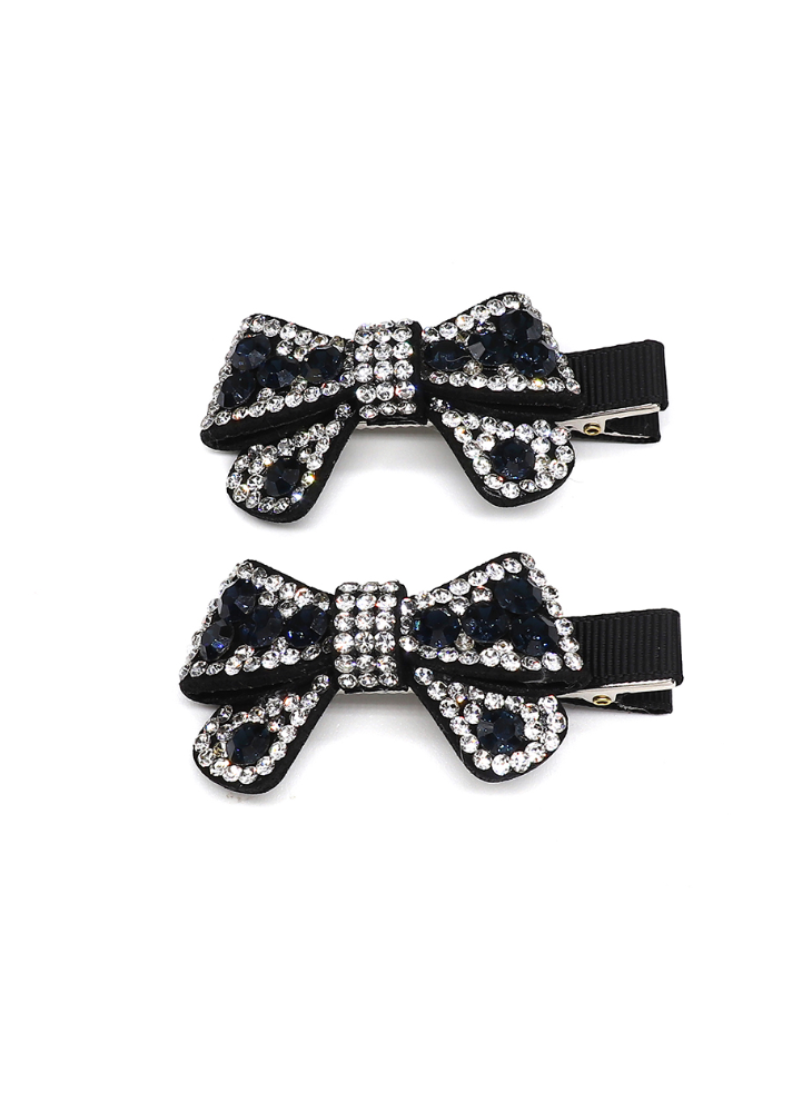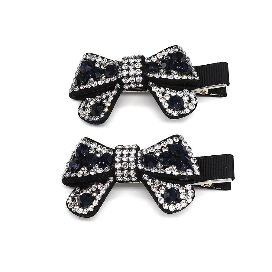 Elevate your everyday look with this charming duo of hair clips, each adorned with sparkling crystal embellishments in clear and black. Perfect for adding a touch of elegance to any hairstyle, these bow-shaped clips combine timeless style with a modern sparkle. Whether you're dressing up for a special occasion or simply want to brighten your day, they work beautifully together or separately. A thoughtful gift for anyone who loves a bit of glamour!
