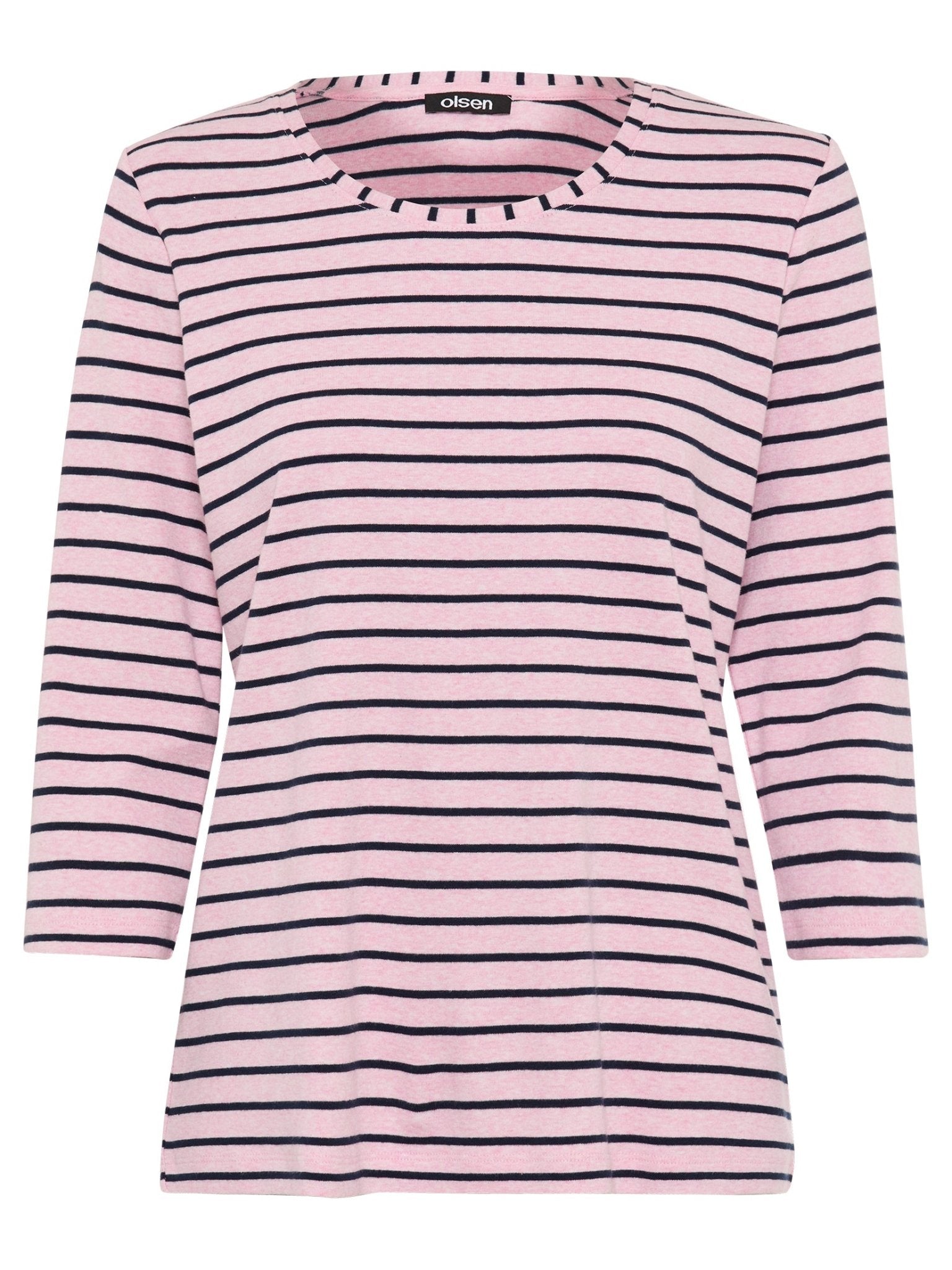 Elevate your everyday wardrobe with this charming striped t-shirt, featuring alternating pink and blue stripes that bring a fresh, playful energy to any outfit. Crafted from pure cotton, it feels soft against your skin. The classic crew neck and three-quarter sleeves offer a flattering, versatile silhouette that works beautifully with jeans for a casual weekend look, or layered under a blazer for a polished, put-together outfit.