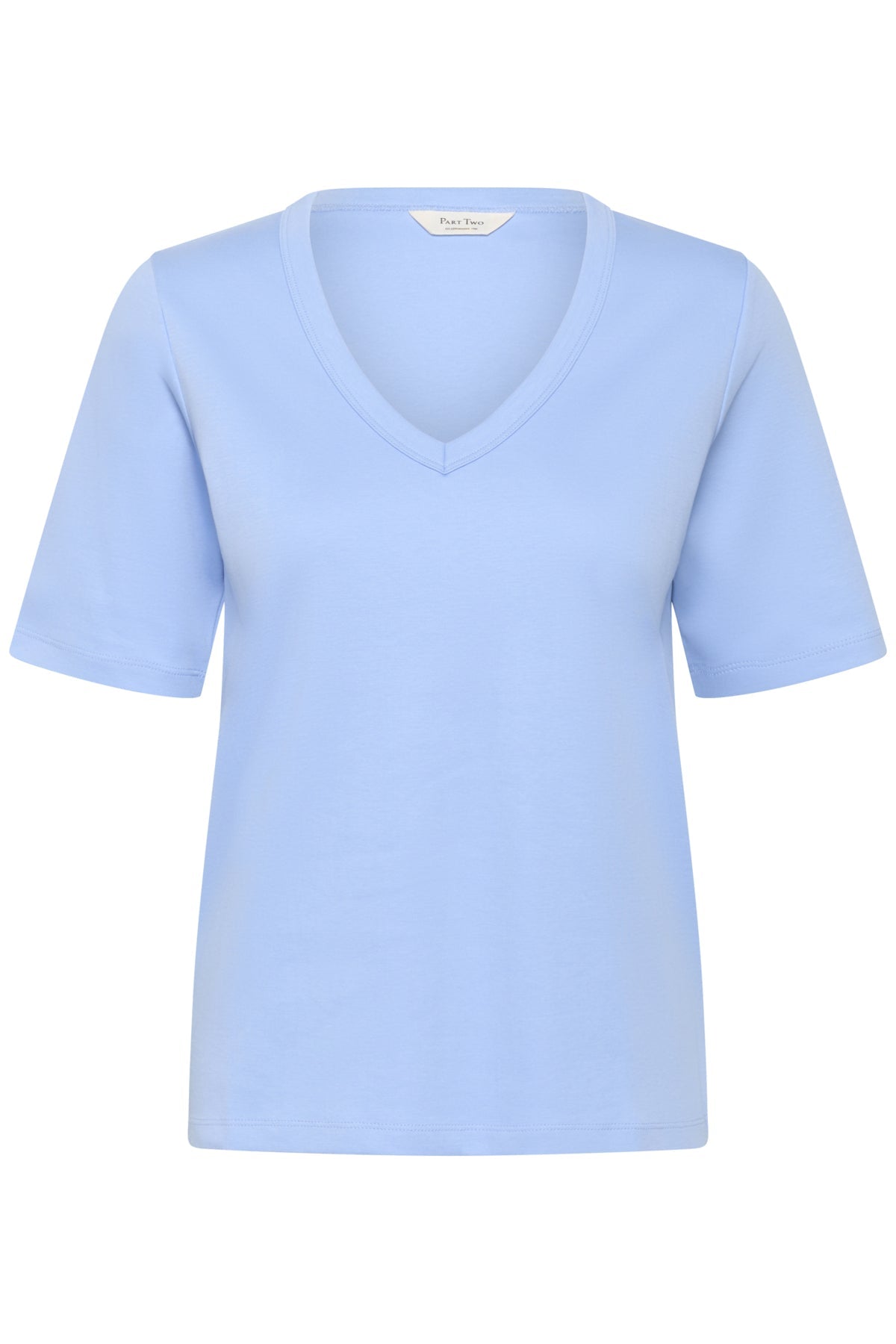 Introducing the Part Two V-Neck Top in a gorgeous light blue—your new everyday essential. Crafted from a soft cotton blend, this piece combines comfort with effortless style. The classic V-neckline and relaxed fit create a flattering silhouette, while short sleeves make it ideal for any season. Whether you're pairing it with your favourite denim for a casual look or layering it under tailored pieces for something more polished, this versatile top adapts beautifully to your wardrobe.