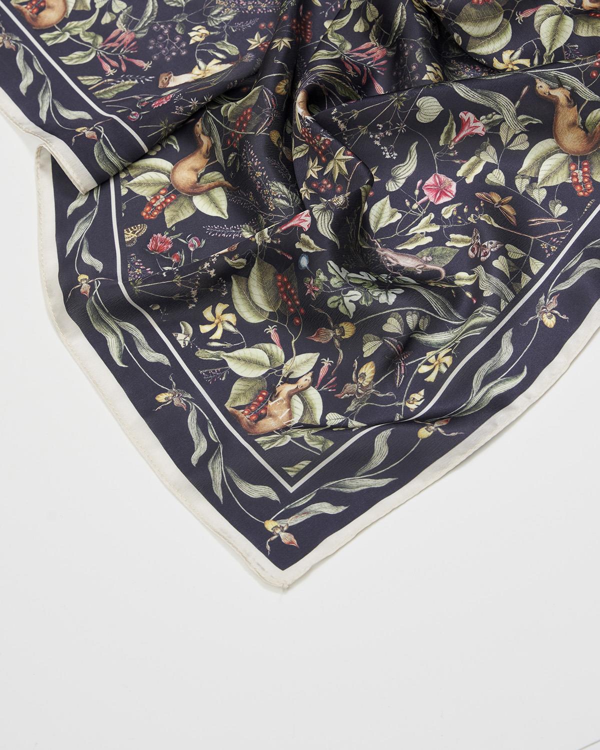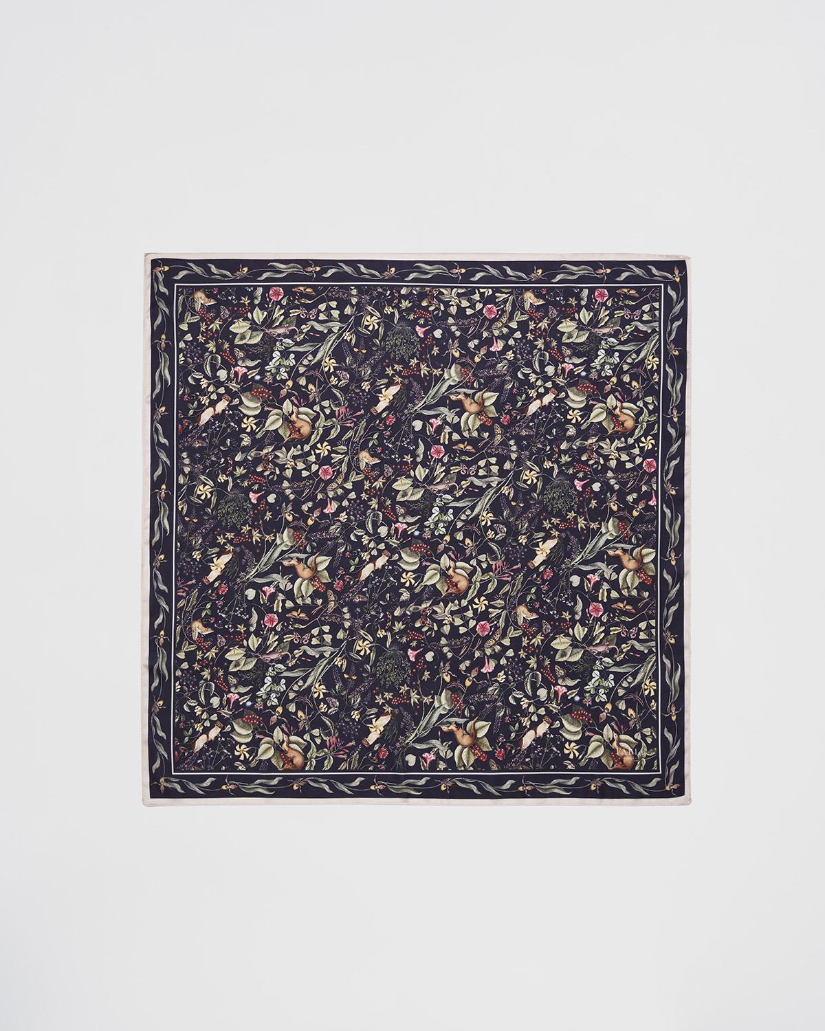 Fable England Wolf Garden Square Scarf Navy