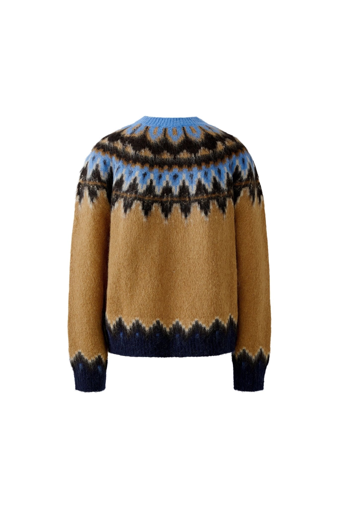 This jumper features a stylish Norwegian patterned yolk in a comfortable raglan design, crafted with soft alpaca wool in a fashionable brown and blue color combo. Finished with rib knit edges, it offers both warmth and timeless style. Pair it with jeans and a cosy coat for effortless winter comfort.