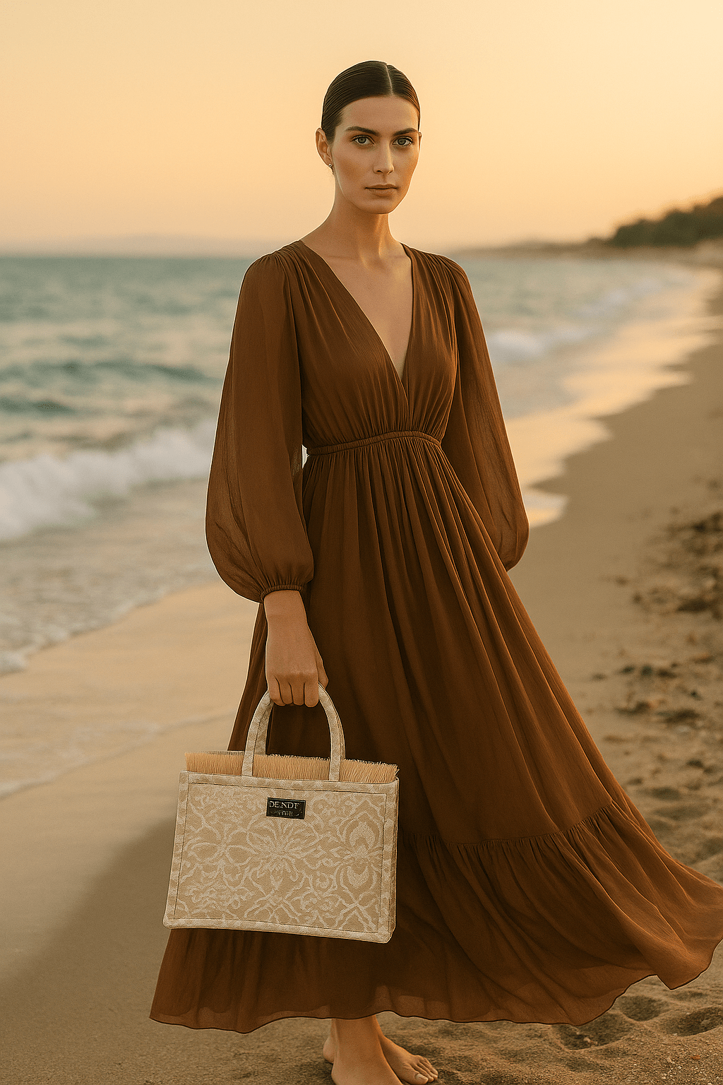 Crafted by skilled artisans in Greece, the Sorena Large Tote Bag combines timeless design with everyday practicality. This beige essential features premium 100% cotton construction with an intricate embroidered texture, offering sophisticated style for any occasion. With its generous capacity, secure zipped closure, and thoughtful details including a detachable shoulder strap and internal pocket, it's the perfect companion for work, travel, or leisure.