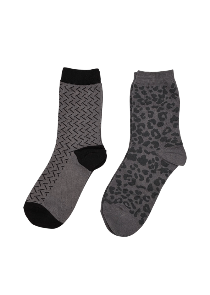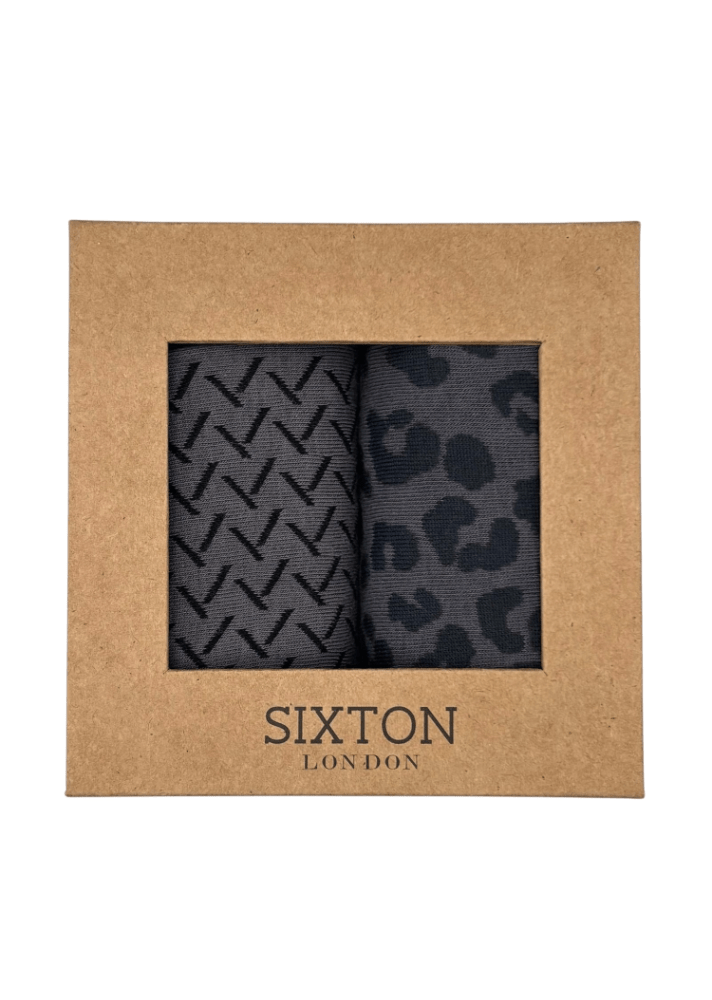 Sixton London Charcoal Kyoto & Leopard Sock Box Duo