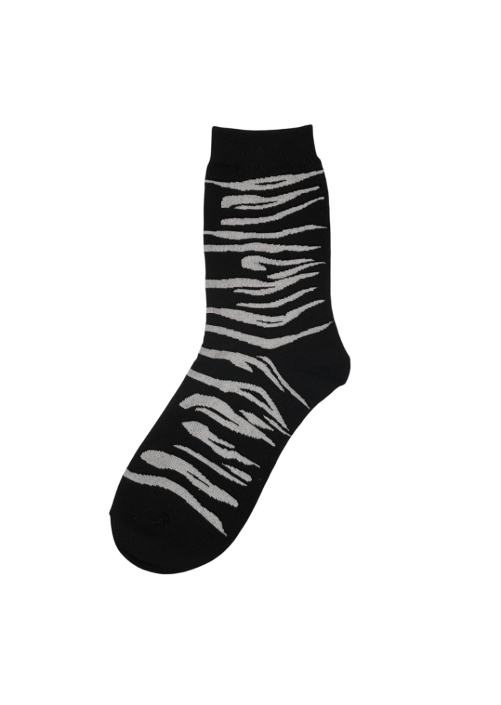Make a bold statement with these striking zebra print socks from Sixton London. Crafted from a comfortable cotton and polyester blend enhanced with spandex stretch, they deliver flexibility and durability for all-day wear. The classic black and grey pattern adds personality to any outfit, whether you're dressing up or keeping it casual. Available in two additional colourways, you can build a collection that matches your unique style. Perfect for anyone who loves to express themselves through their accessories.