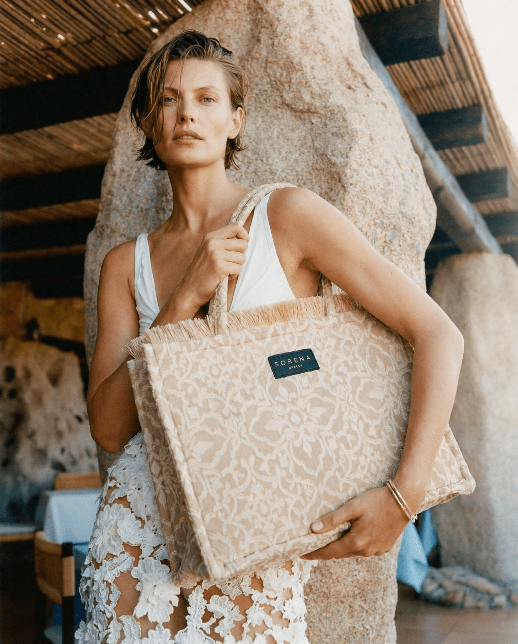 Crafted by skilled artisans in Greece, the Sorena Large Tote Bag combines timeless design with everyday practicality. This beige essential features premium 100% cotton construction with an intricate embroidered texture, offering sophisticated style for any occasion. With its generous capacity, secure zipped closure, and thoughtful details including a detachable shoulder strap and internal pocket, it's the perfect companion for work, travel, or leisure.