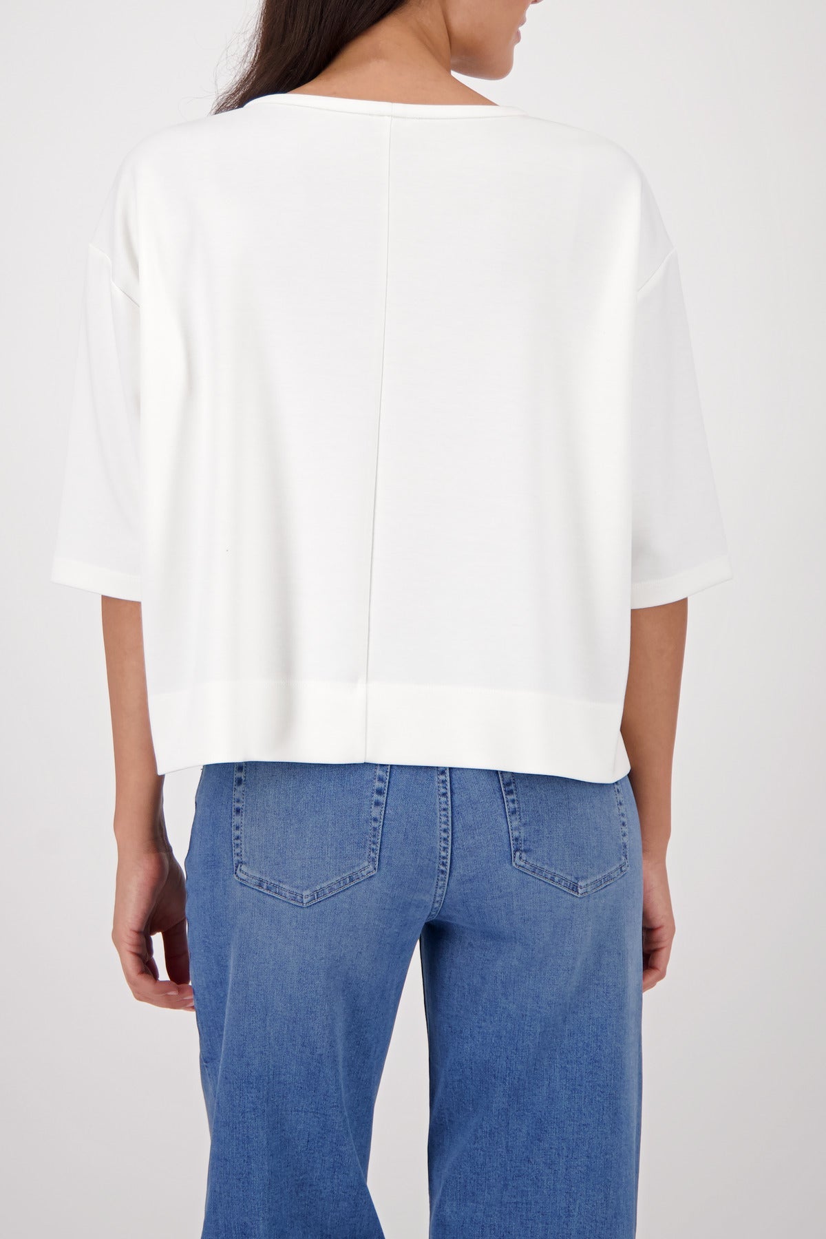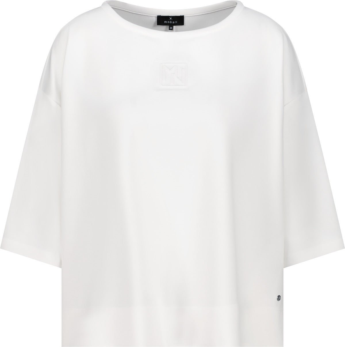 Embrace effortless style with this Monari sweatshirt, crafted from luxurious viscose that feels wonderfully soft against your skin. The subtle embossed emblem adds a touch of sophistication to the front, while dropped shoulders and three-quarter sleeves create a relaxed, flattering fit. In timeless ivory with a classic round neckline, this piece is your go-to for everything from casual weekends to laid-back social occasions. Pair it with denim or joggers for an instantly polished look that prioritises comfort without compromising on style.