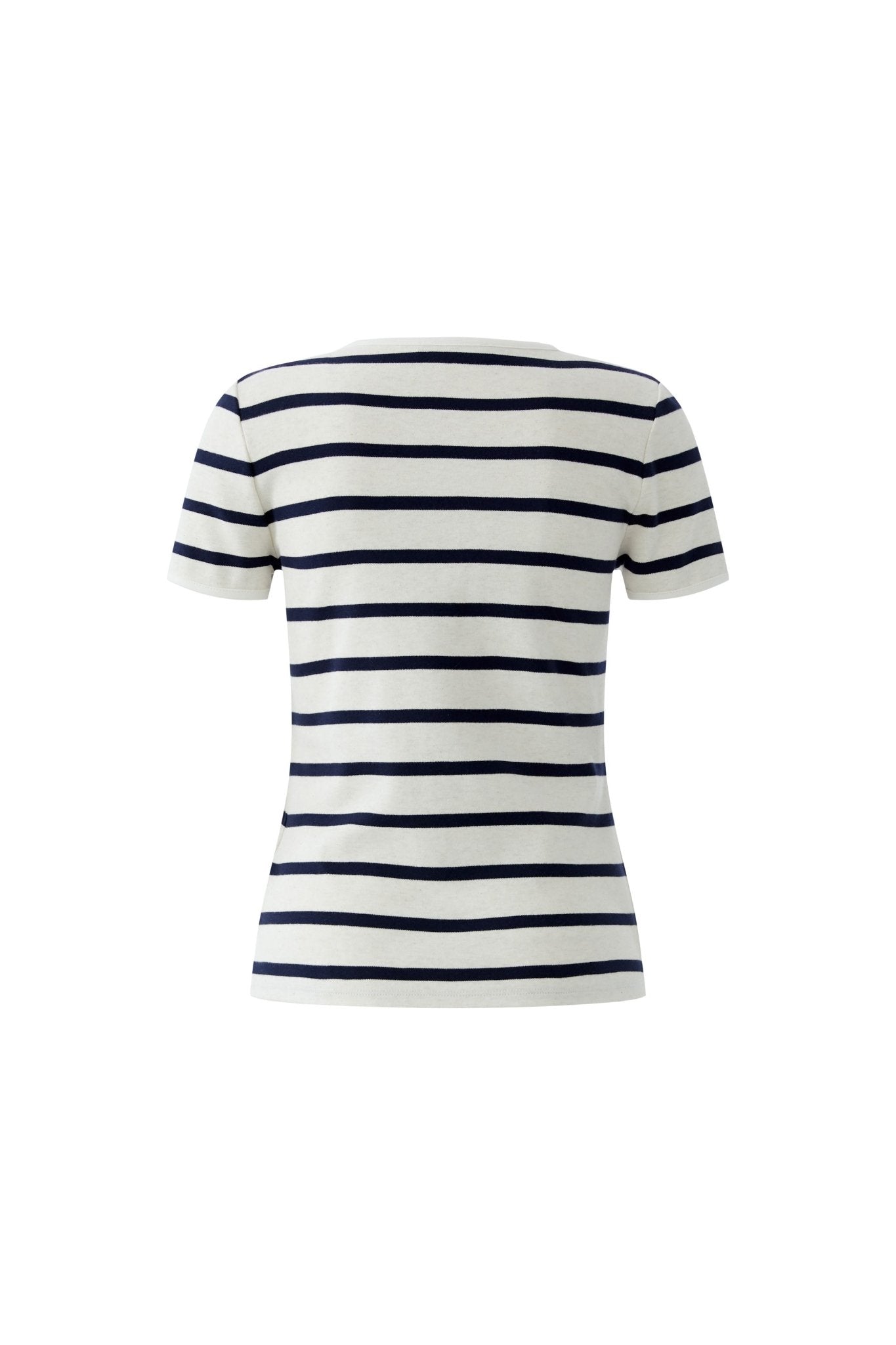 Elevate your everyday wardrobe with this expertly crafted striped top. Constructed from pure cotton with a subtle melange finish, it delivers exceptional softness against the skin. The slim fit and regular length create a flattering silhouette, while the distinctive serafino neckline adds feminine sophistication. Sporty short sleeves and delicate gold coloured button accents at the neckline provide refined detailing. Perfect for layering or wearing solo, this versatile piece transitions seamlessly from casual to polished occasions.