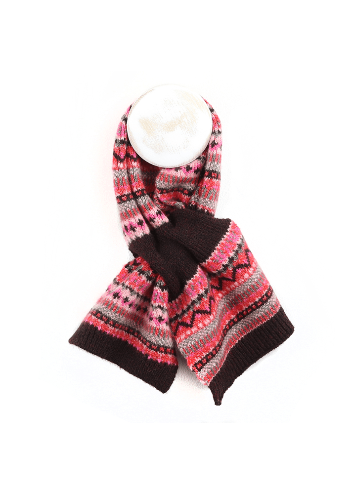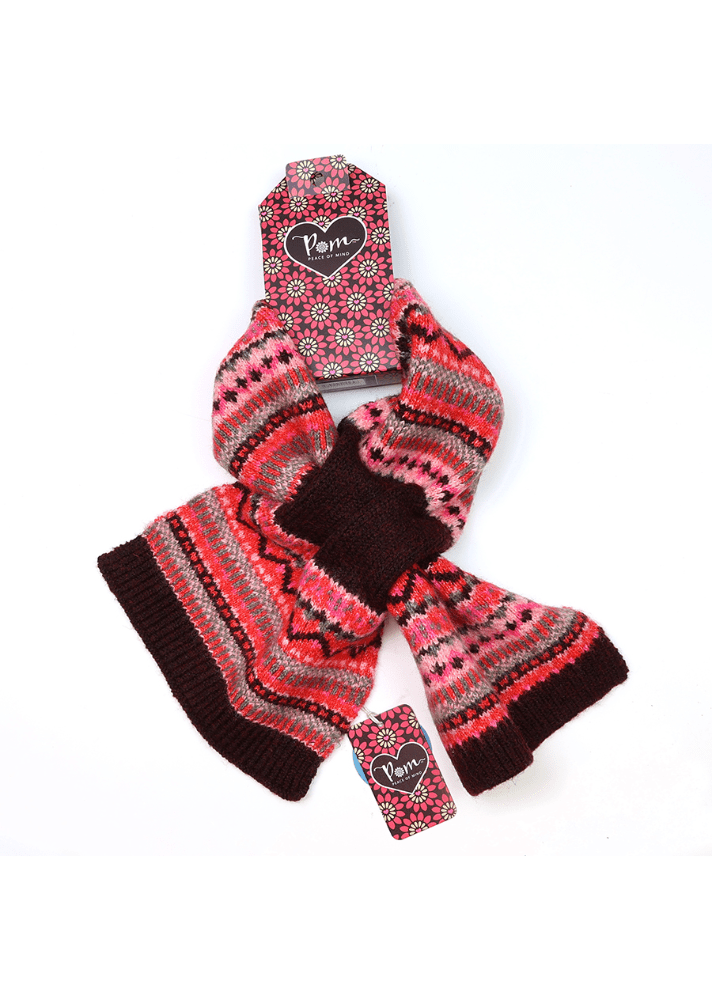 Elevate your winter wardrobe with this thoughtfully designed Fair Isle pull-through scarf, crafted from a recycled blend in a stunning red, pink, and aubergine palette. Complete your look by pairing it with the coordinating bobble hat for a put-together winter aesthetic that feels as good as it looks.
