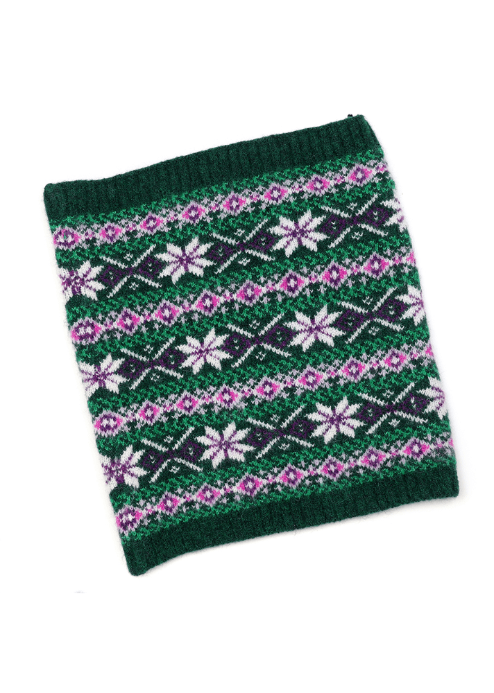 Embrace Nordic charm with this stunning Scandi starflower snood, featuring a striking dark green, pink, and white palette that elevates any winter wardrobe. Crafted for comfort and style, this soft and warm accessory wraps you up in pattern. Mix and match with the coordinating hat and gloves (sold separately) to create a fully coordinated winter set for braving the elements. Add a pop of Nordic design to your everyday style!