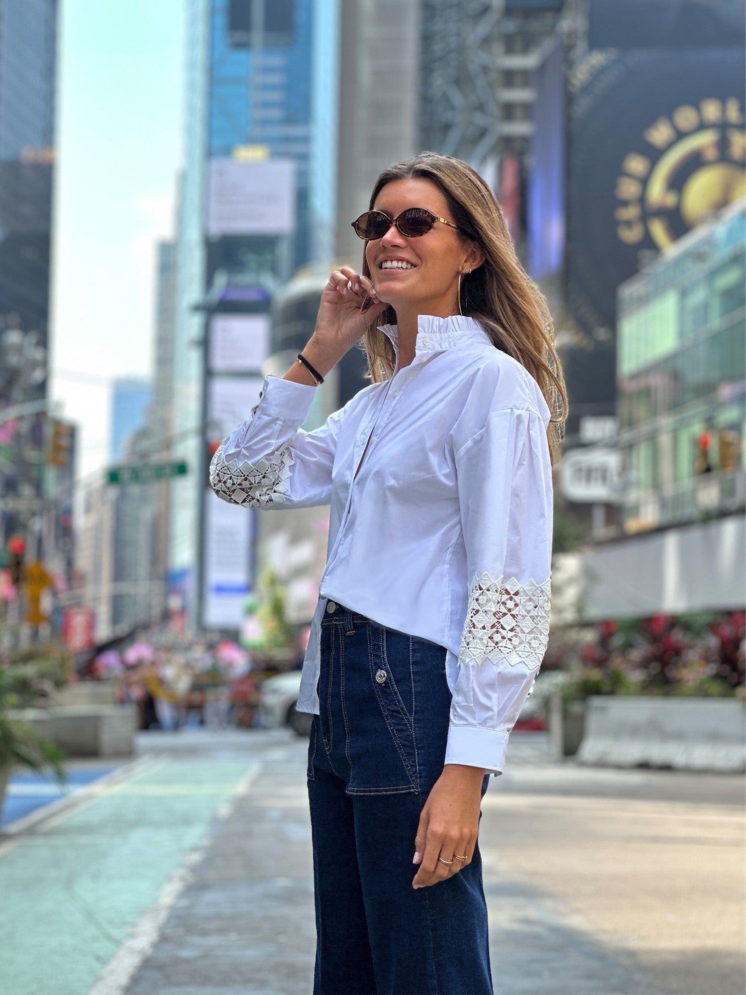 Step out in style with the Vilagallo wide leg jeans, Noa, in a vibrant medium blue wash. Featuring trendy square front pockets and a sleek metal button, these jeans bring a fresh twist to your denim collection. Washed using an eco-friendly ozone generator, they’re kind to the planet and your wardrobe. Pair them with a Vilagallo blazer for a playful yet polished look that’s ready to turn heads.